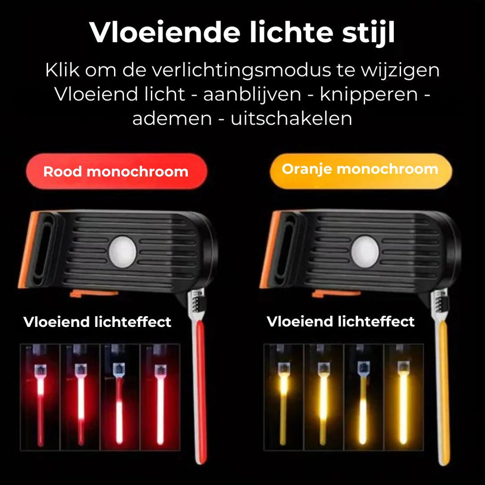 GlowLight biedt krachtige LED-verlichting met meerdere lichtstanden, waaronder constante, knipperende in pulserende opties.