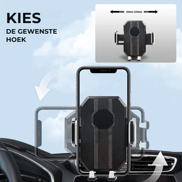 Deze autohouder voor mobile telefoons heeft een zeer flexibele 360° kogelgewricht dat oneindige kijkhoeken biedt.