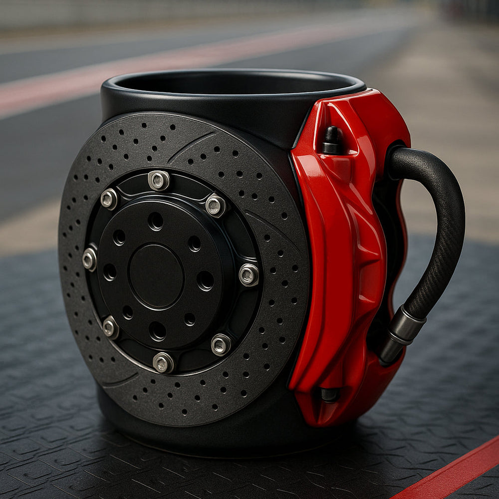 Starten Sie Ihren Motor – und Ihren Tag – mit diesem einzigartigen Kaffeebecher im Bremsbelag-Design. Werkstatt, Garage oder jedes Büro.