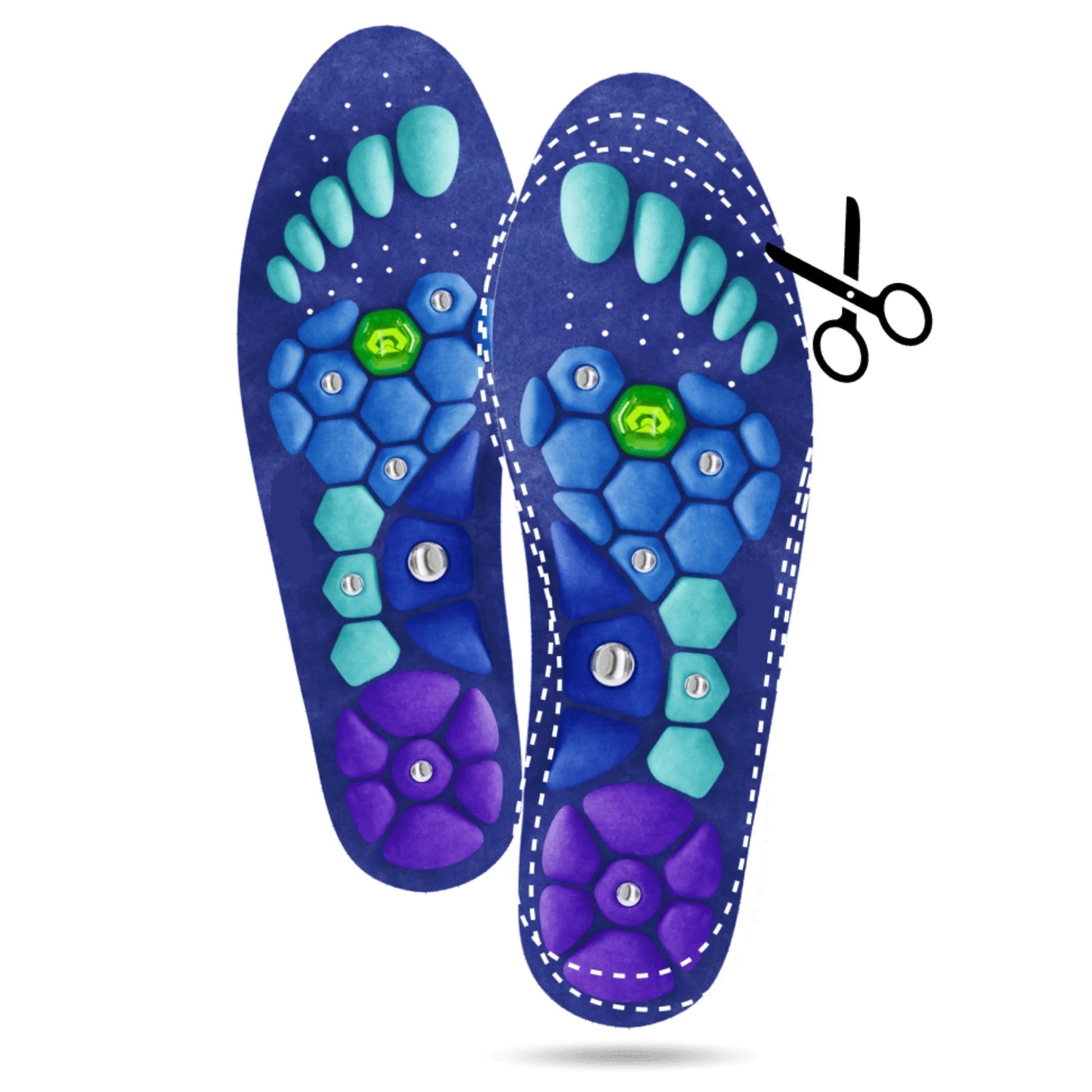 Im Gegensatz zu herkömmlichen Einlegesohlen bieten diese Einlagen eine Kombination aus Akupressur, Magnetstimulation und einer antibakteriellen Silberbeschichtung.