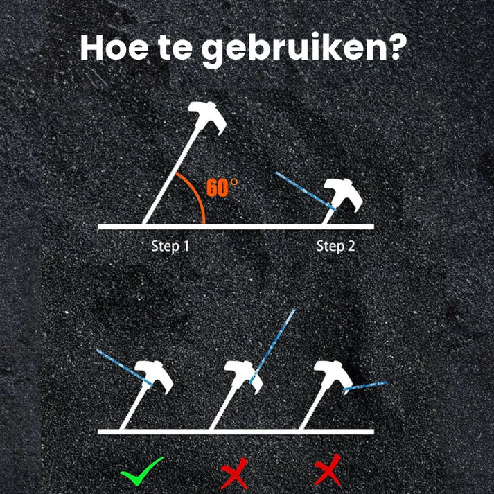 Diesel-Zeltheringe eignen sich für alle Arten von Untergründen, von hartem Lehmboden bis hin zu lockerem Sandboden. Herkömmliche Zeltheringe.