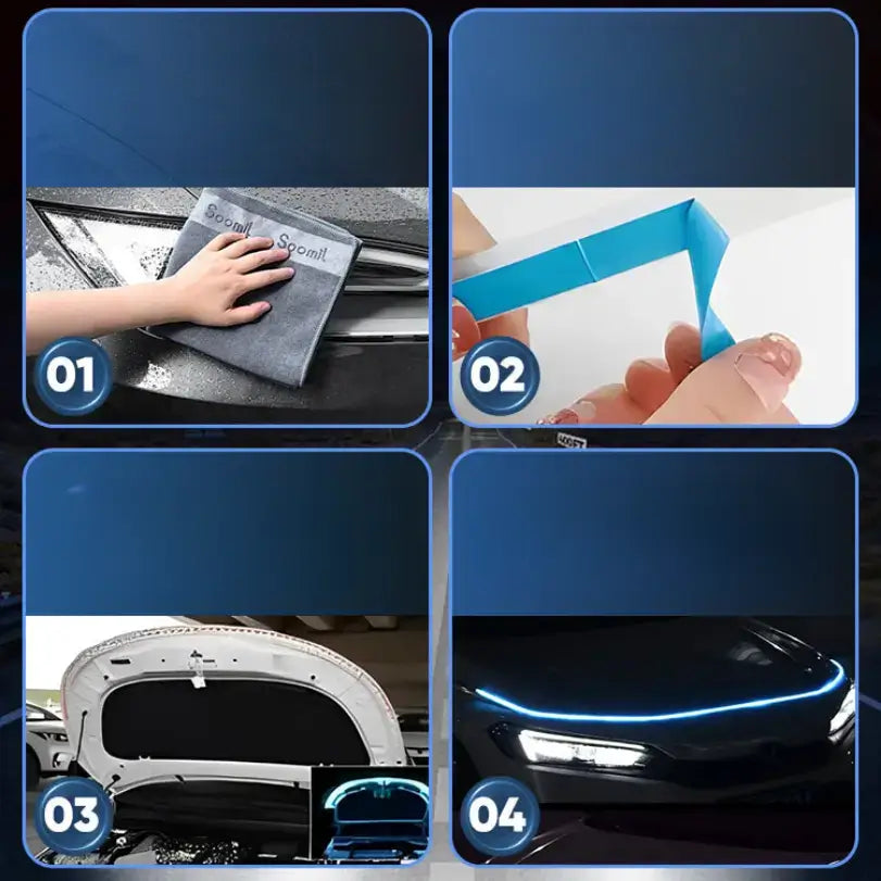 Für die Installation der LED-Streifen benötigen Sie weder kompliziertes Werkzeug noch professionelle Hilfe. Dank der einfachen Plug-and-Play-Installation genießen Sie Ihre neue, dynamische Beleuchtung in wenigen Minuten. Bereit, Eindruck zu schinden? Verwandeln Sie Ihr Auto in nur wenigen Schritten.