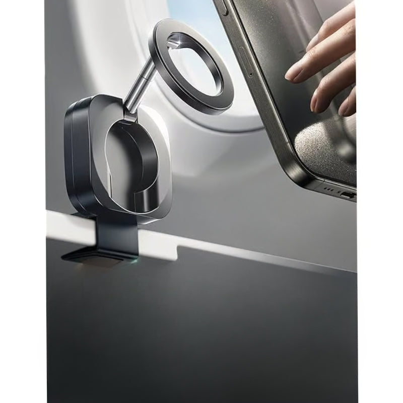 Erleben Sie maximale Stabilität mit unserer MagSafe-Reisehalterung aus hochwertiger Aluminiumlegierung. Dank der breiten Basis und der rutschfesten Silikonpads bleibt Ihr Smartphone während des Fluges sicher an seinem Platz. Diese Handyhalterung für Flugzeuge ist ideal für die Nutzung an Bord und vereint Langlebigkeit mit elegantem Design – perfekt für anspruchsvolle Reisende. Ein Muss für Langstreckenflüge!